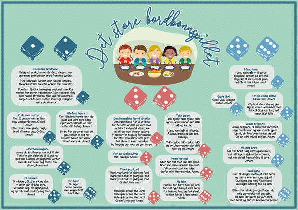 Nedenfor finner du et bordbønnspill med mange forskjellige bordbønner. Kos dere med bordønnen. Minn hverandre på storheten i øyeblikket, at Gud har lyst til å være hos oss og være en del av familien og at det er derfor vi har bordbønn.